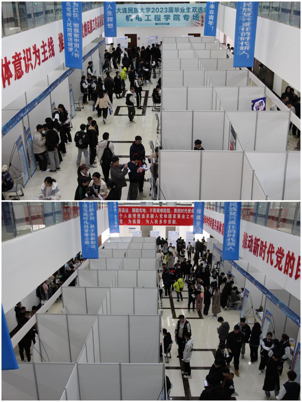 为贯彻落实学校党委“稳就业、保就业”决策部署和“三抓”工作总要求,抢抓春季招聘黄金期,全力促进2023届毕业生高质量就业,4月7日,大连民族大学2023届毕业生双选会机电工程学院专场在金石滩校区北区鼎新楼举办。学校招生就业处处长王喜春、学院领导班子、毕业班班导师、研究生导师、辅导员深入双选会现场,学院2023届研究生、本科生参加了此次双选会。