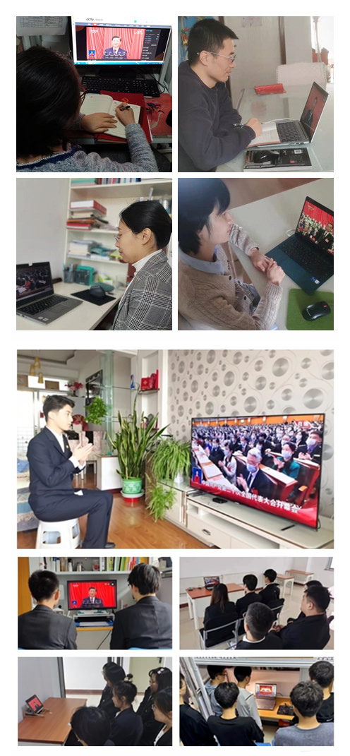 收看过程中,学院全体教职工、各学生党支部、各团支部聚精会神听报告,全神贯注作笔记,将坚定的理想信念、火热的青春融入党的二十大召开的热烈浓厚的氛围中。