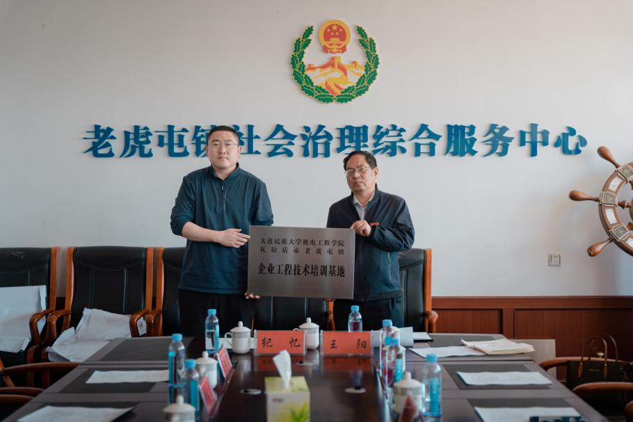 瓦房店市老虎屯镇为机电工程学院授“企业工程技术培训基地”牌。