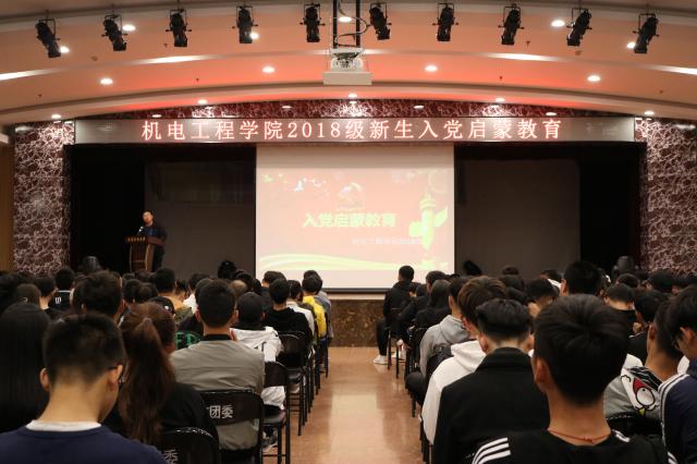 民大新闻网讯 10月8日,机电工程学院2018级新生入党启蒙教育在大学生活动中心举行。机电工程学院党总支副书记王洪友担任主讲。辅导员和2018级全体学生参加。
