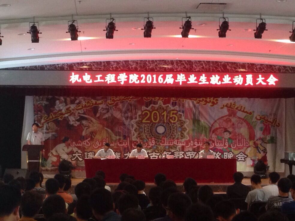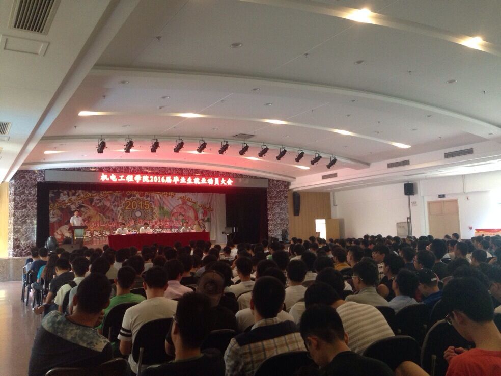 9月25日,机电工程学院2016届毕业生动员大会在大学生活动中心隆重召开。招生就业处处长孙忠谦、副处长敖承勇、院党总支书记刘德全、毕业班班导师代表及全体毕业生参加了大会,会议由总支副书记龚涛主持。