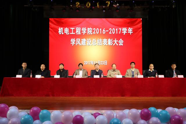 11月23日,机电工程学院举办2016-2017学年度学风建设总结表彰大会。党委学生工作部部长王喜春,招生就业处处长孙忠谦,大学生创新教育中心主任冉春秋,学院领导班子成员、优秀校友代表、辅导员及2016级、2017级学生参加活动。