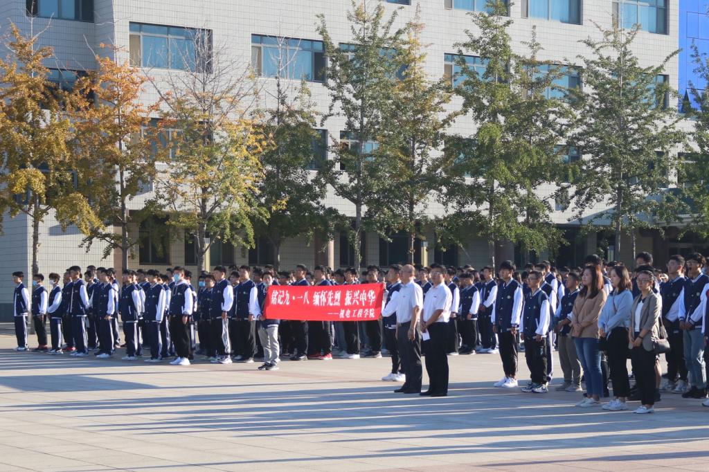 早上七点,伴随着国歌,五星红旗在百余名师生的注视下缓缓升起。自动化192班张跃馨作为学生代表发言,她提倡当代大学生,要牢记九一八,让警钟长鸣心中,勇担时代重任,练就过硬本领,为祖国的发展贡献自己的力量。机电工程学院党总支副书记王洪友老师发表讲话,他激励同学们要居安思危,勿忘国耻。作为新时代的青年学生,要牢记习近平总书记对青年人的殷切希望,树立远大理想,勇于担当。