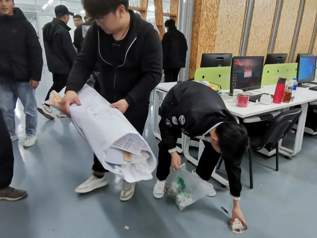 为把学习党史同推动园区各项工作相结合,把学习成效转化为为同学们办实事,机械类学生党支部在集中学习的基础上,号召学生党员为园区、同学办实事,解决机房、工作室物品杂乱和自习室占座问题,从生活中的点滴做起,为同学们解决问题。
