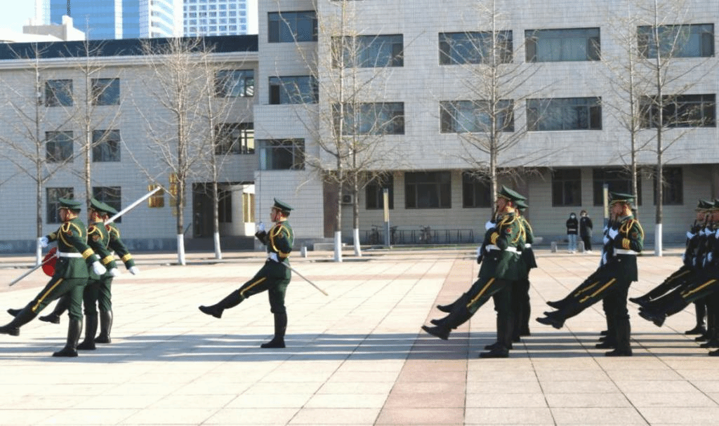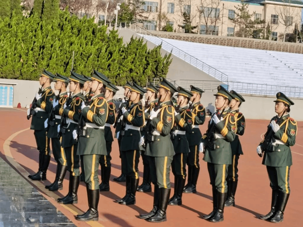在铿锵有力、整齐划一的脚步声中,国旗护卫队护送五星红旗入场,升旗仪式正式开始。