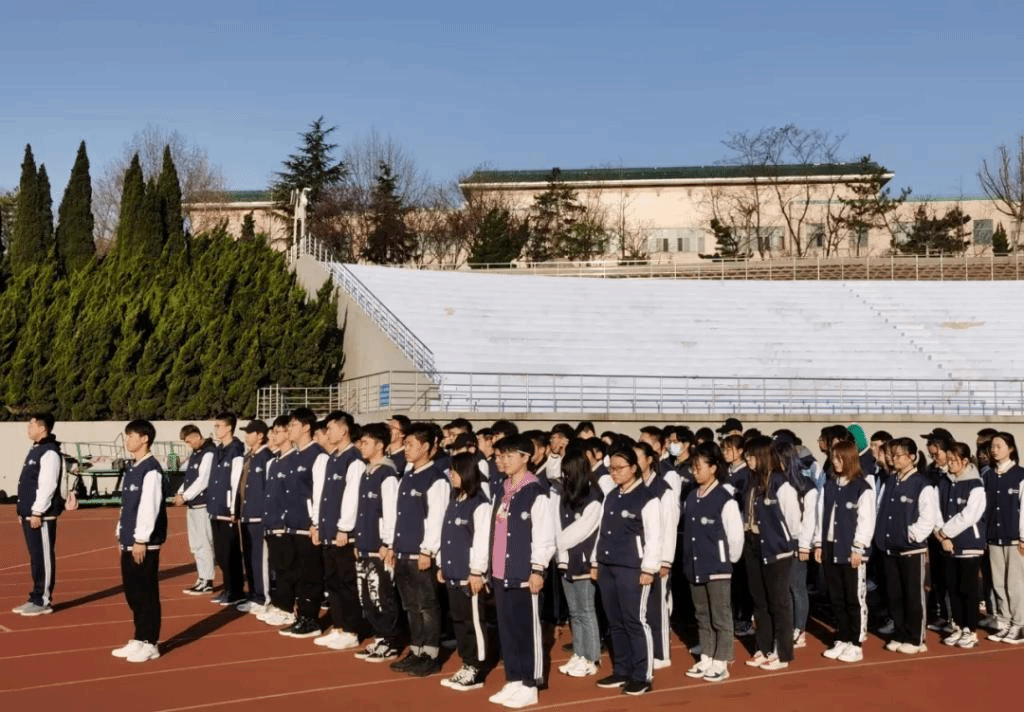国歌奏响,五星红旗在微风中冉冉升起,在场师生全部庄严站立,面向五星红旗高唱国歌。