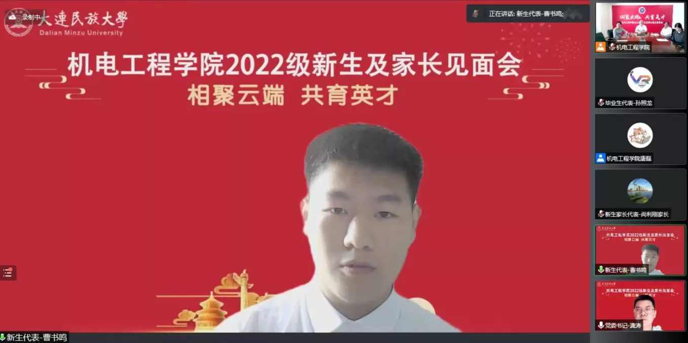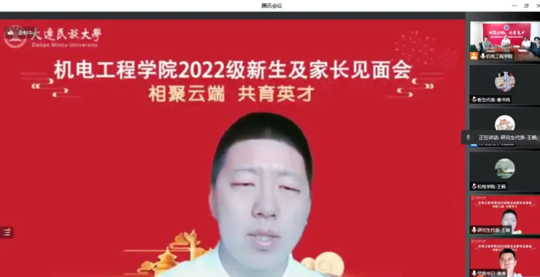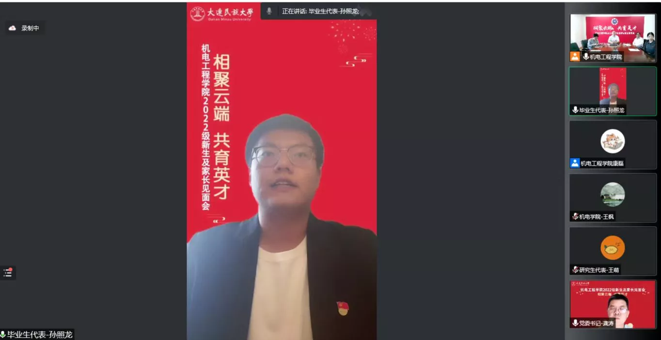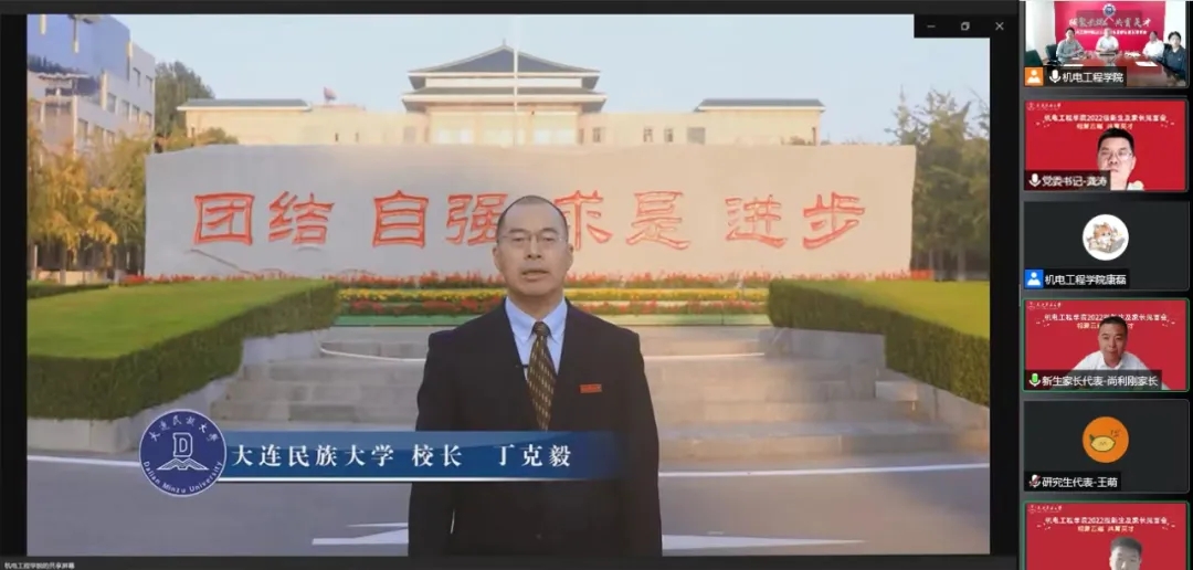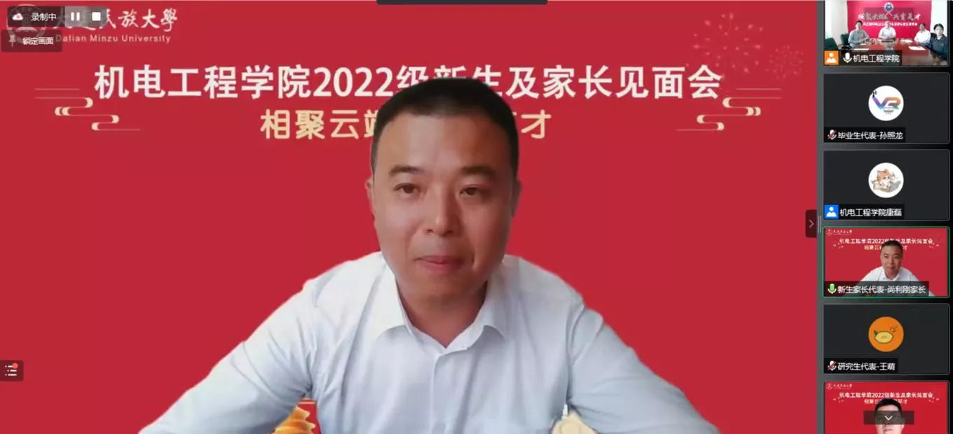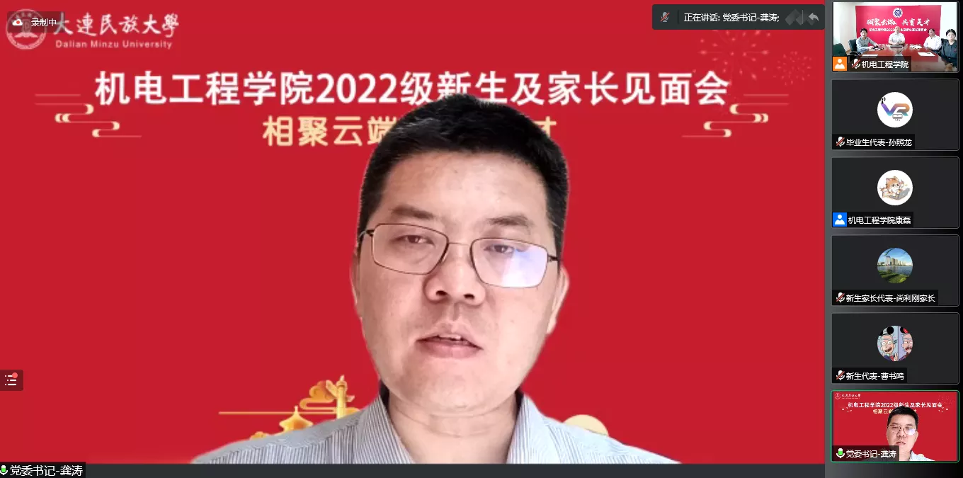 9月11日上午,机电工程学院隆重召开了“相聚云端、共育英才”2022级新生及家长见面会。学院领导班子成员、研究生导师代表,学院各系、各专业主任,科级干部,2022级新生班导师、辅导员老师,优秀校友代表,2022级全体新生和家长们参加本次会议,会议由学院党委书记龚涛主持。