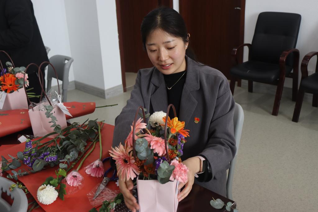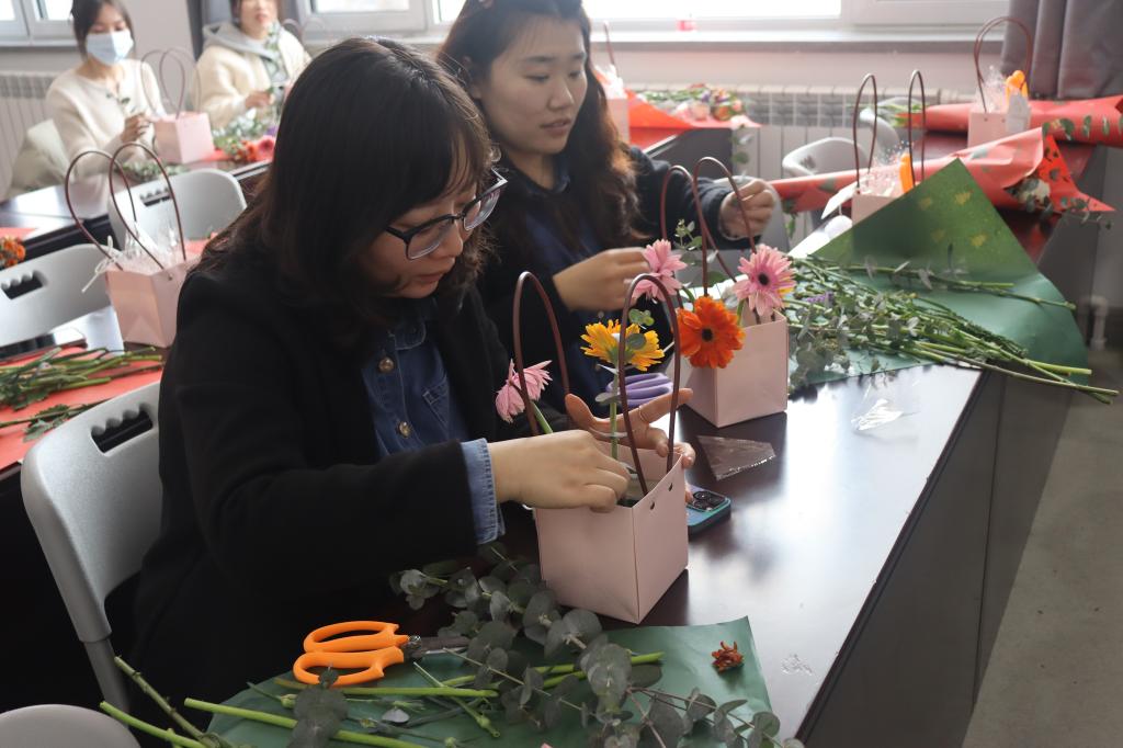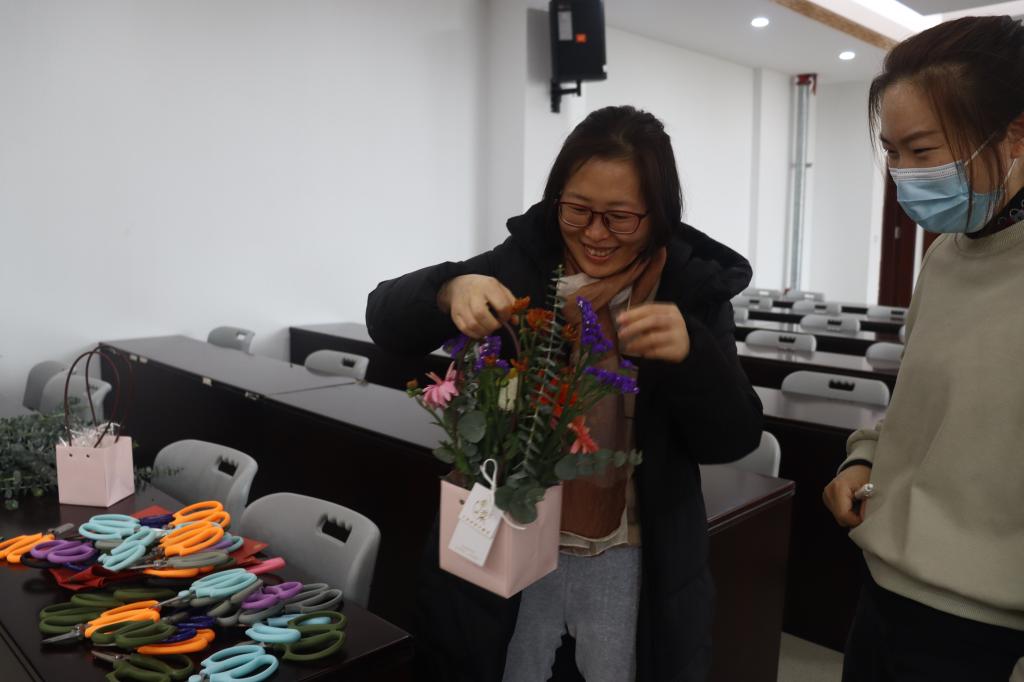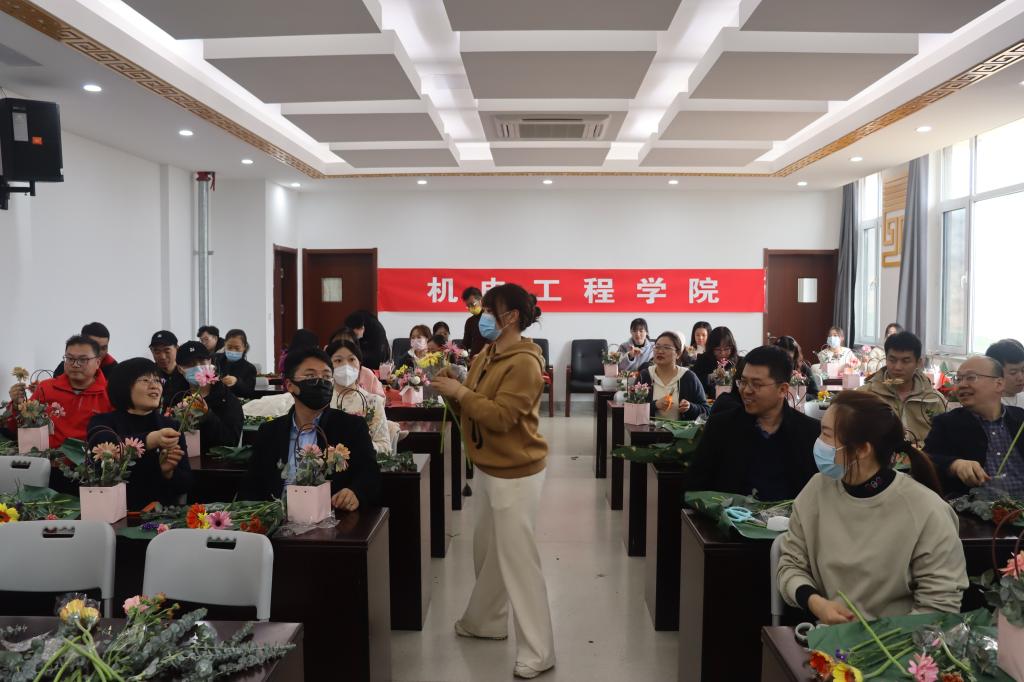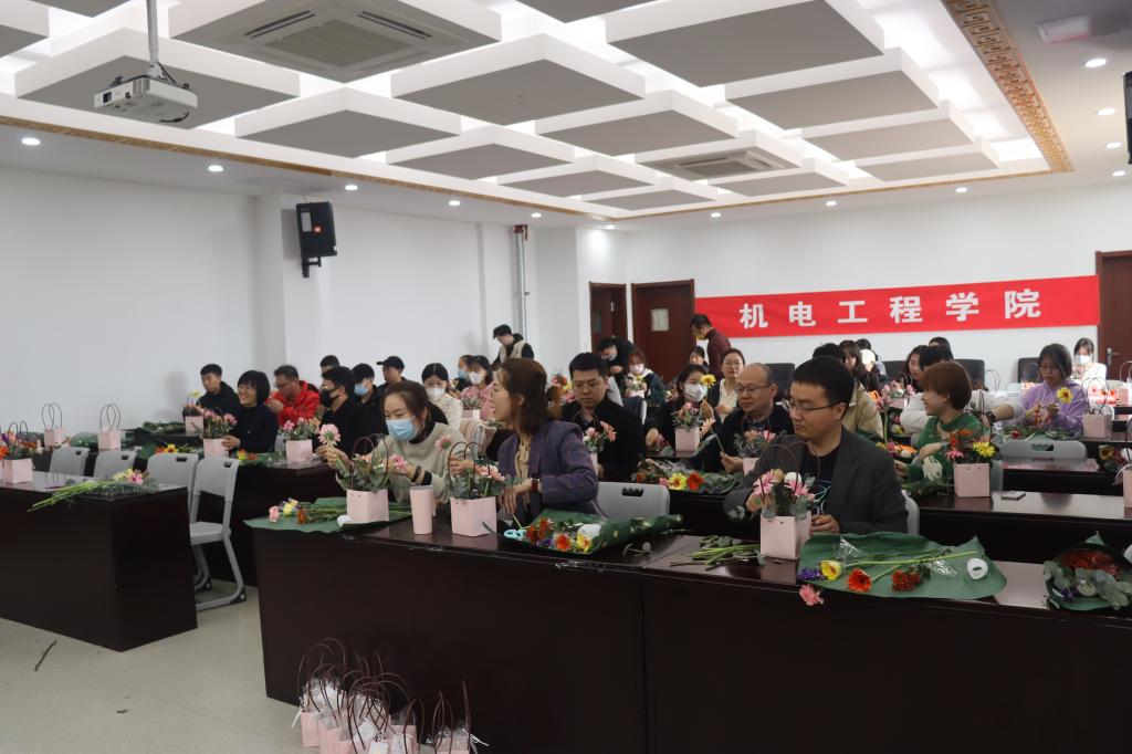 3月7日中午,机电工程学院3楼会议室飘来阵阵芳香,来自学院各个岗位的五十余名教工正在制作一份属于自己的节日礼物。