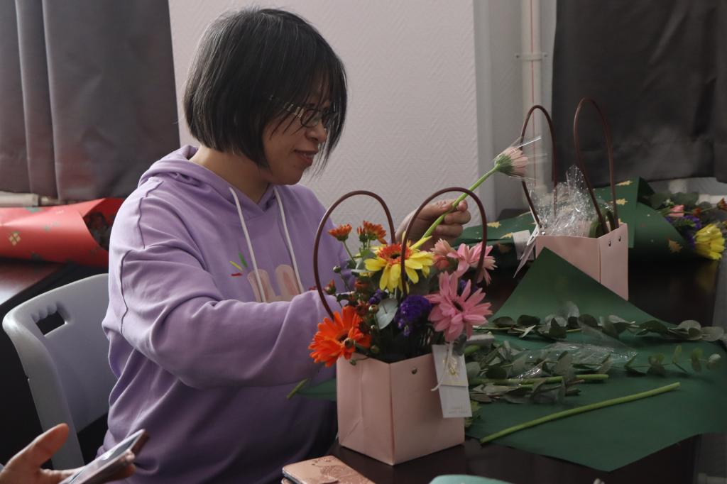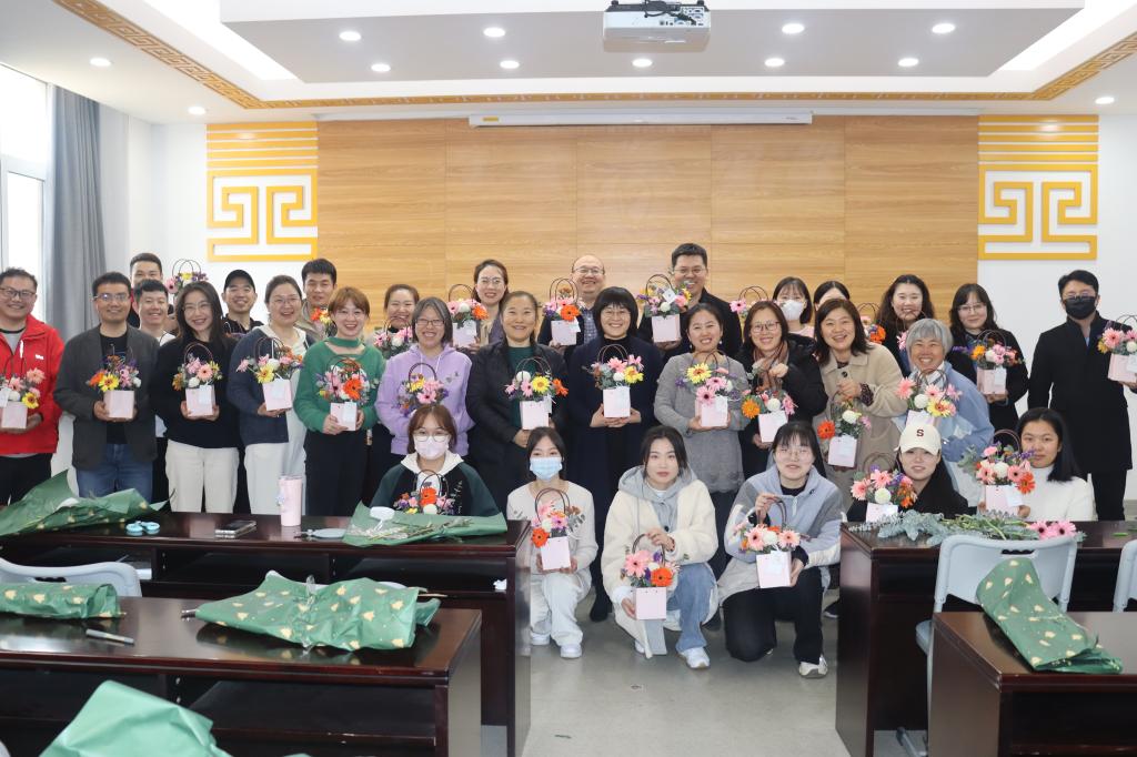 活动还邀请了学院部分女同学与班导师共度节日,深化师生情,共享欢乐时光。活动结束后,老师和同学们拿着自己制作的花艺作品纷纷拍照合影留念。大家纷纷表示,今天的插花学习活动令自己收获满满,不仅学会了如何用插花装扮自己的小家,还掌握了基础的花艺知识,从插花中找到乐趣,从作品中找到成就感,同时也进一步增强了教职工之间的感情交流,学院的文化氛围更加浓厚。