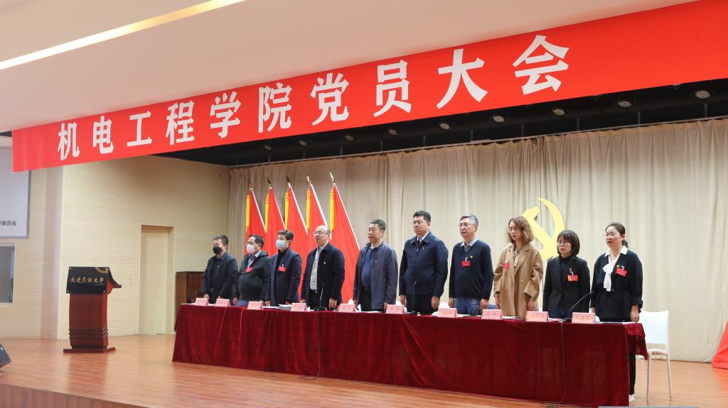会议在雄壮的国歌声中拉开帷幕。学院党委书记龚涛代表上一届党委会向大会作了题为《踔厉奋发 勇毅前行 努力开创机电工程学院事业发展新局面》的工作报告。报告全面总结了学院过去五年来取得的成绩。在学校党委的正确领导下,学院党委团结带领全院师生员工坚持以习近平新时代中国特色社会主义思想为指导,落实立德树人根本任务,突出铸牢中华民族共同体意识主线,深入贯彻落实学校“四个突出”战略,着力在“加强党建引领、完善学科布局、优化队伍结构、深化产教融合、增强科研实力、强化思想引领、提升内涵建设”七个方面推进学院改革发展,取得了一定的成绩。