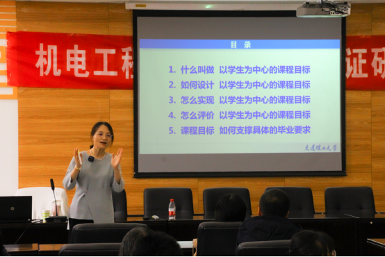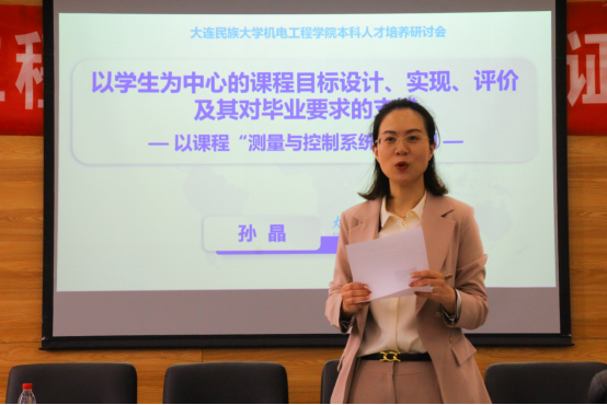 研讨会上,孙晶教授与大家分享了在人才培养方案制定及课程大纲设置过程中以学生为中心的课程目标设计方法、课程目标支撑毕业要求的相关内容。