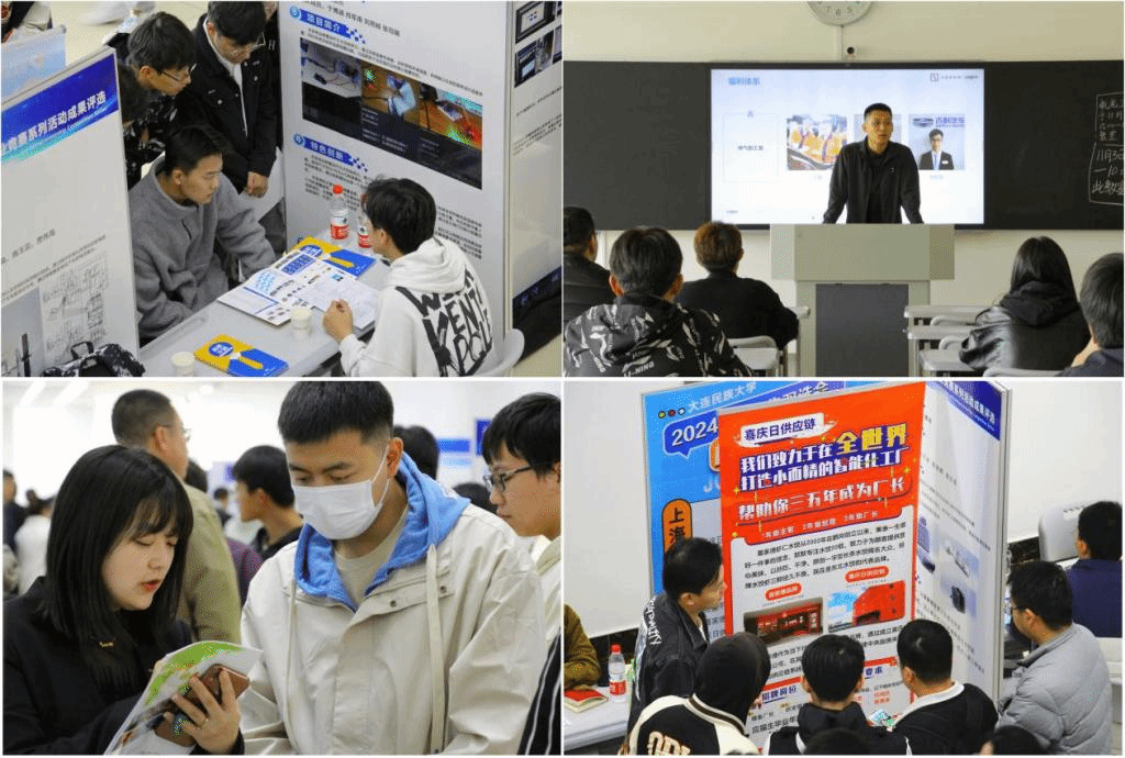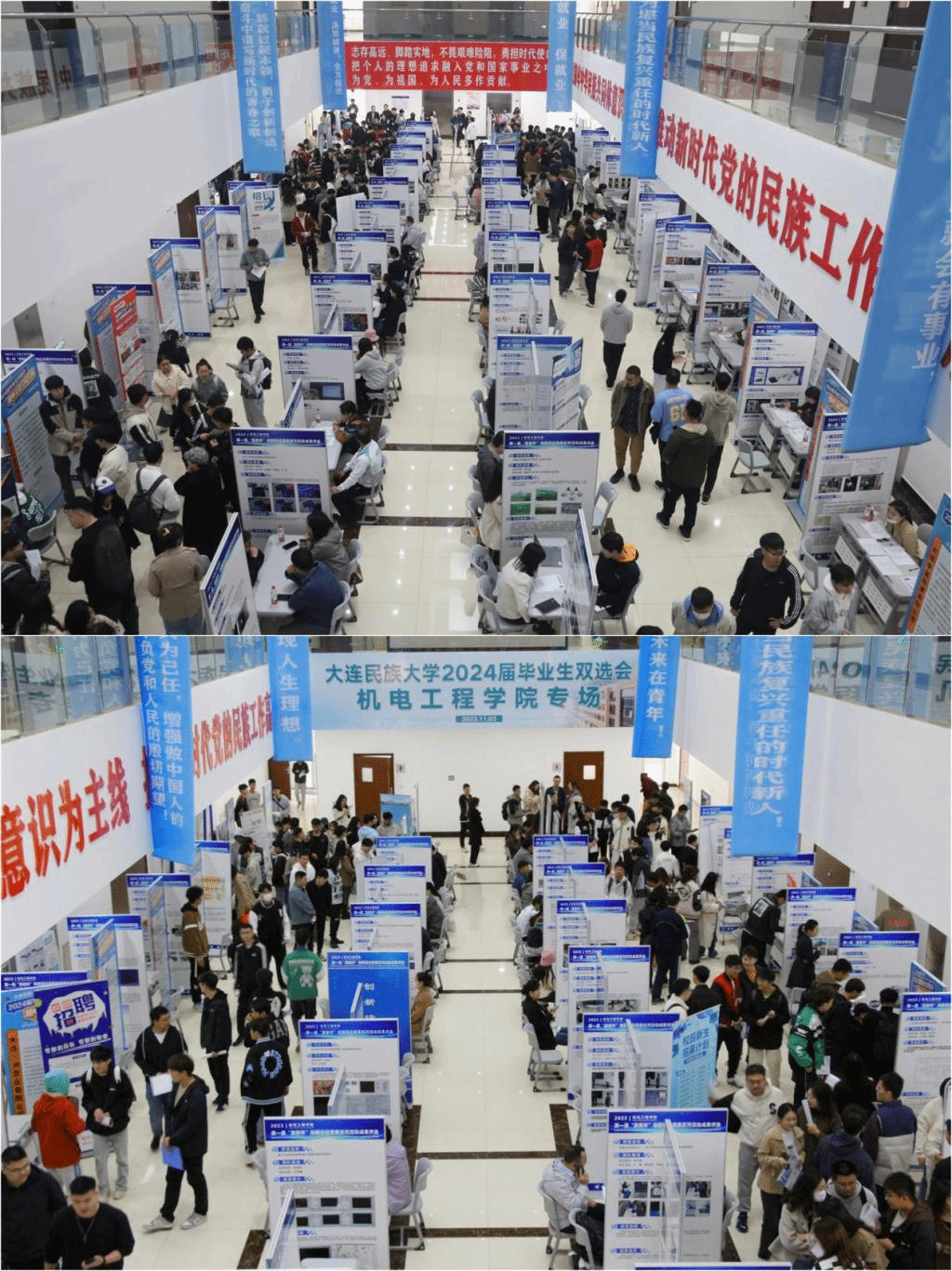 为贯彻落实学校党委“三抓”工作总要求和聚焦落实立德树人根本任务,全面构建以铸牢中华民族共同体意识为主线的高质量就业工作体系,抢抓春季招聘关键期,全力促进2024届毕业生高质量就业,11月3日,大连民族大学2024届毕业生双选会机电工程学院专场在金石滩校区北区鼎新楼举办。招生就业处等有关职能部门、学院领导班子、毕业班班导师、研究生导师、辅导员深入双选会现场,与企业对接交流,学院2024届研究生、本科生及部分兄弟学院相关专业毕业生参加了此次双选会。
