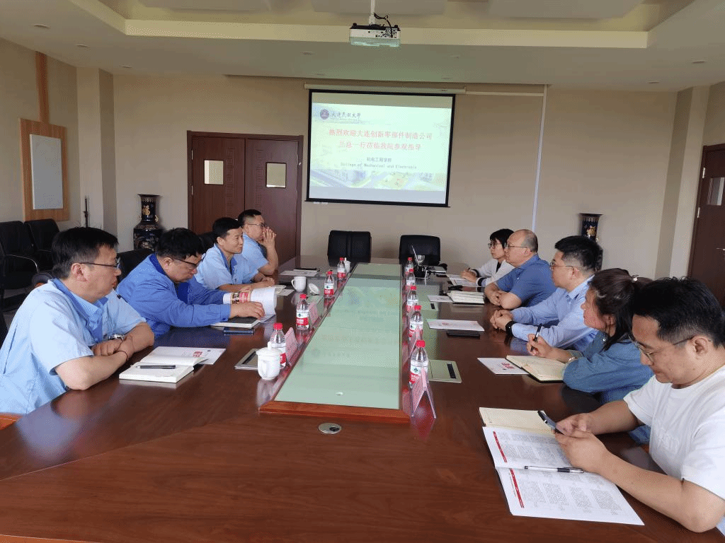 张涛院长对兰总一行人的到来表示热烈欢迎。他介绍了机电工程学院概况,重点介绍了学院科研情况、本科和研究生培养、产业学院建设、毕业生去向等。兰总介绍了大连创新零部件制造公司概况,重点介绍了主要产品、人才需求、技术发展等。双方就校企合作进行了交流,希望能在人才培养、科研项目、实验室共建等方面开展深度合作。