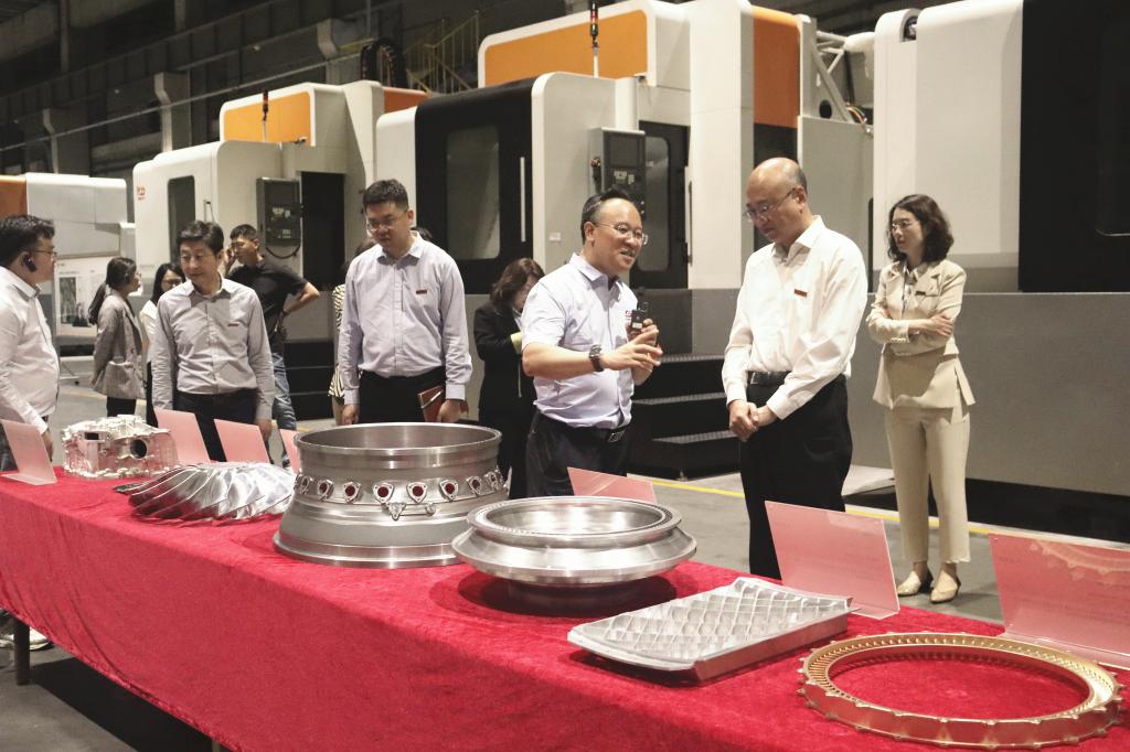座谈会后,赵铸与在企工作的我校校友代表亲切交流,勉励大家努力工作,为企业发展贡献力量。赵铸一行还参观光洋集团地下智能化工厂。